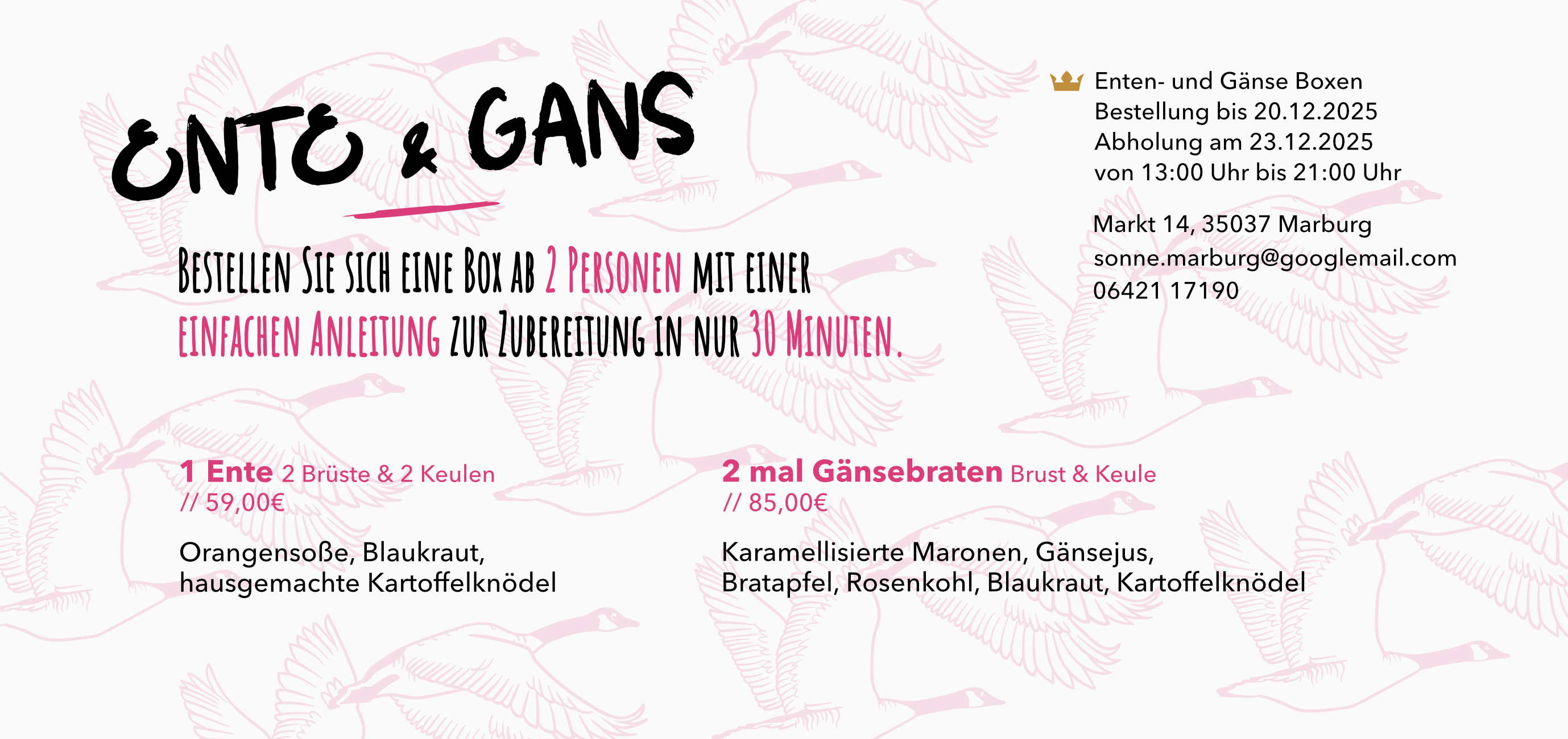Sonntags machen wir Pause ausser an Feiertagen und Festtagen in Marburg.